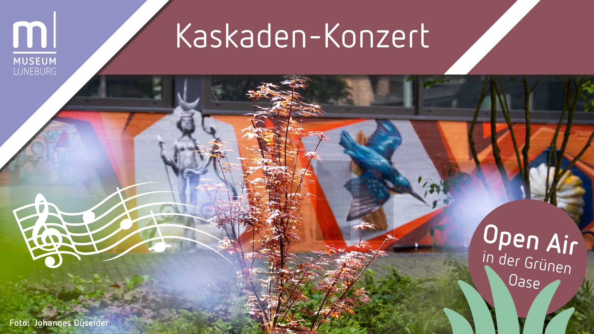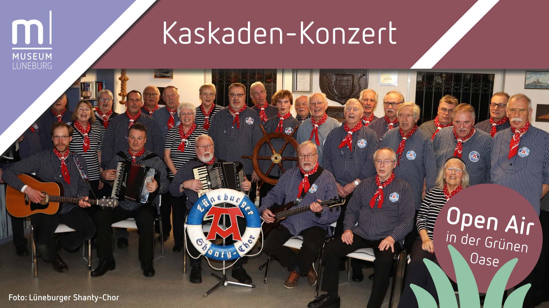 Chansons, Klezmer, Tango, Folk, Blues und ein Shanty Chor – vom 31. Mai bis 6. September 2026 gibt es im Museum Lüneburg wieder viele musikalische Höhepunkte zu entdecken. Acht Kaskaden-Konzerte präsentieren lokale Künstler*innen verschiedener Genres und laden in die „Grüne Oase“ des Museums ein.